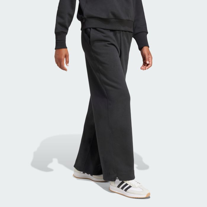 Wide legs give these adidas pants a modern silhouette that pairs well with fitted tops and baby tees. Cotton-blend fleece puts you at ease, while the loose cut gives you plenty of room to move and a laid-back vibe. An embroidered logo adds a subtle touch of sport-inspired style.