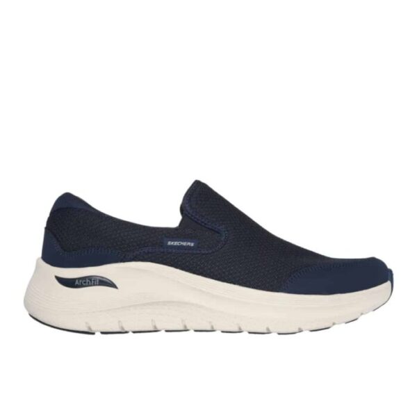 Experience all day comfort and support in the navy Skechers Arch Fit 2.0 – Vallo 232706/NVY. This laceless men’s shoe has a breathable mesh upper with leather overlays for durability. Enjoy a personalised fit with the removable Arch Fit® insole, while the cushioned midsole provides all-day comfort.