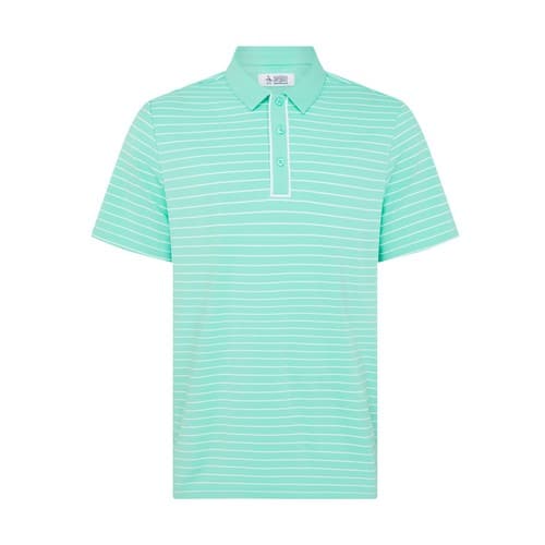 Show off timeless style at your next round sporting this Original Penguin men’s polo made for golf but versatile enough to go anywhere. Single knit fabrication delivers a lightweight feel, while added stretch offers superior comfort and easy movement. This men’s polo features moisture-wicking properties to keep you cool and dry. Made with 30% recycled polyester, this golf top also features a simple stripe print and matching self-collar for classic polo detailing.