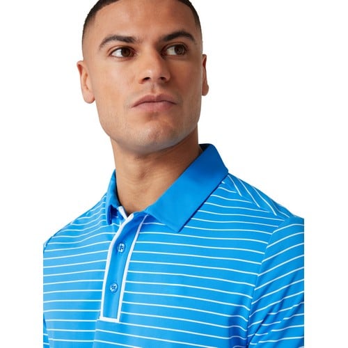 Show off timeless style at your next round sporting this Original Penguin men’s polo made for golf but versatile enough to go anywhere. Single knit fabrication delivers a lightweight feel, while added stretch offers superior comfort and easy movement. This men’s polo features moisture-wicking properties to keep you cool and dry. Made with 30% recycled polyester, this golf top also features a simple stripe print and matching self-collar for classic polo detailing.