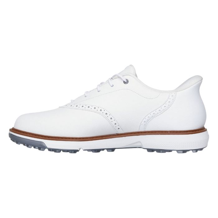 Handle the course with the best in comfort technologies wearing Skechers Hands Free Slip-ins®: GO GOLF® Prestige SL. Designed with our Heel Pillow®, this waterproof golf design features a lace-up leather upper with a removable Arch Fit® insole, lightweight ECO FLIGHT™ cushioning, and a spikeless outsole.