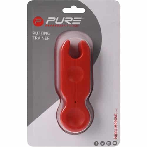 Pure2Improve Golfputting Balance. Create the perfect pace with the Pure2Improve Putting Balance Trainer. The trainer helps you to create the perfect pace for short and long putts. Place the ball in the ball holder and make it not fall off during your putt, the different holders on the trainer can be used for different difficulties. The trainer attach easily to most putters. Can be used by all kind of players who want to improve their game. Ideal in combination with other Pure2Improve golf training tools.