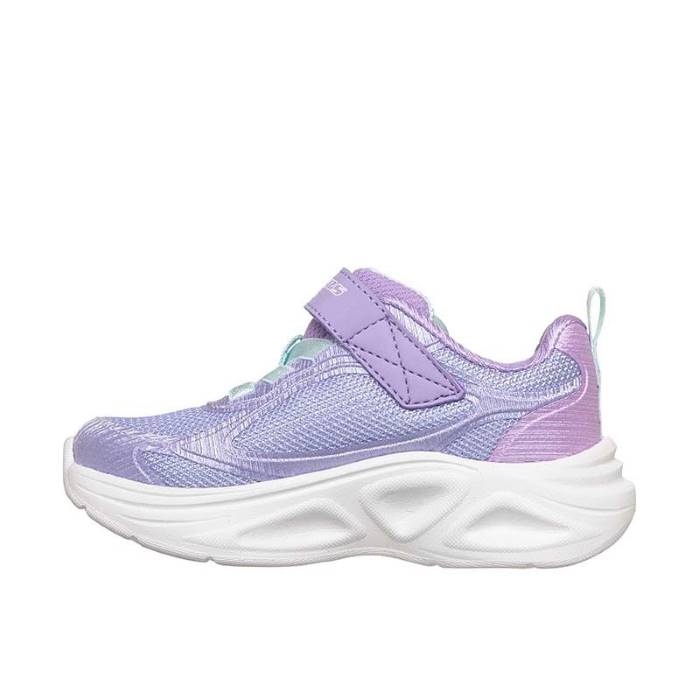 Light-up the fun in sporty fashion wearing Skechers S-Lights®: Sola Glow 2.0 – Dazzle Steps. This Skechers adaptive closure design features an ombre mesh and synthetic upper with stretch laces, an adjustable instep strap, and a lighted midsole.