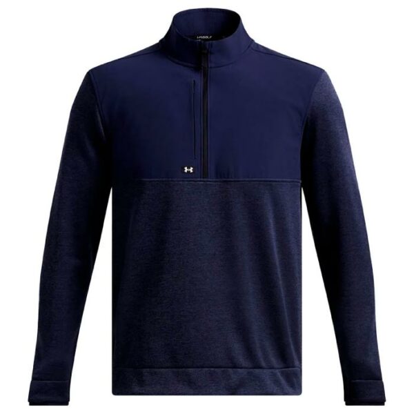 Stay comfortable and warm all season long with our Under Armour Drive Storm SweaterFleece 1/2 Zip Pullover Golf Top. This top combines the best of a sweater, fleece, and jacket to provide you with ultimate performance on the golf course. Stay protected from the rain while still being able to move and swing with ease.